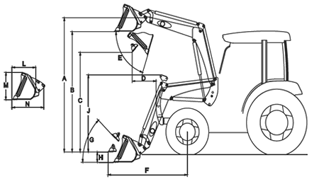D. Maximális kinyújtás esetén a traktor eleje és a kanál közti távolság | 518 mm |